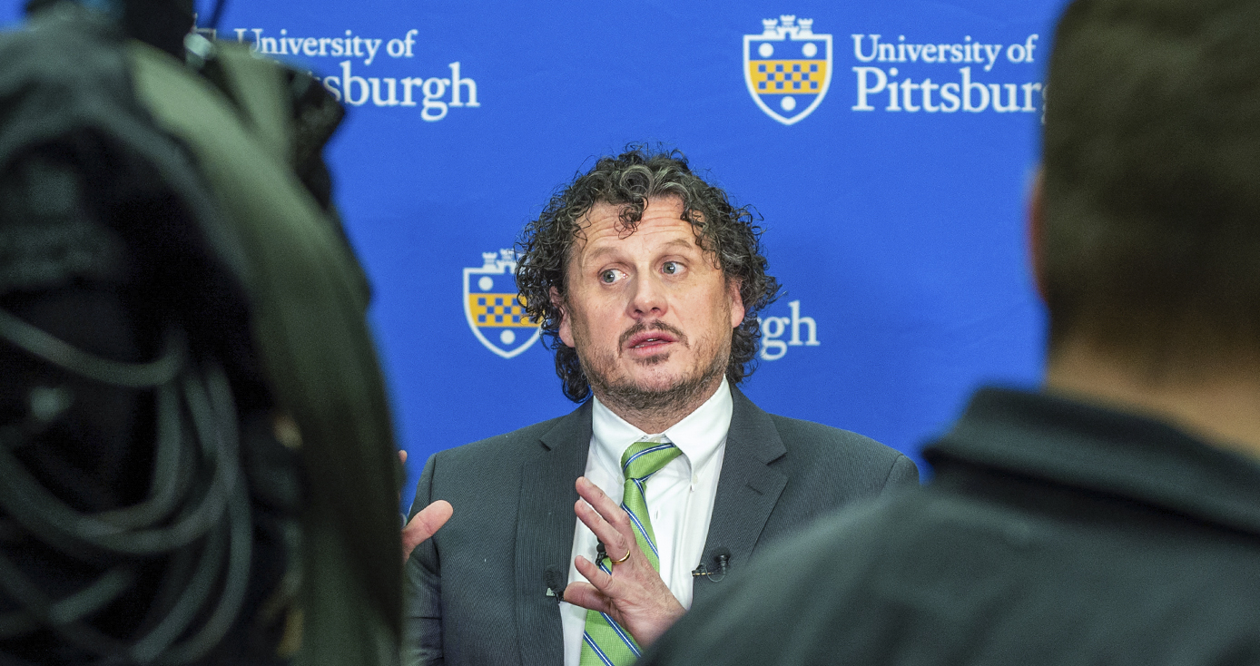 The University of Pittsburgh is in the process of obtaining samples of the novel coronavirus that will allow its researchers to begin work toward developing a vaccine against the disease. As of Feb. 13, the outbreak has killed more than 1,300 people and sickened more than 60,000 worldwide, including 13 cases in the U.S. Paul Duprex (pictured), director of Pitt’s Center for Vaccine Research and its Jonas Salk Chair for Vaccine Research, discussed this effort at the Feb. 12 meeting of the University’s Senate Council. (Mike Drazdzinski/University of Pittsburgh)
